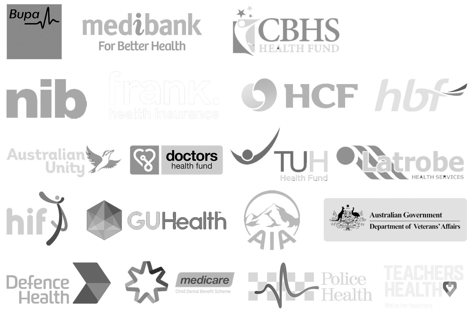 While we’re not a preferred provider, we do accept all major health funds including the below + more.